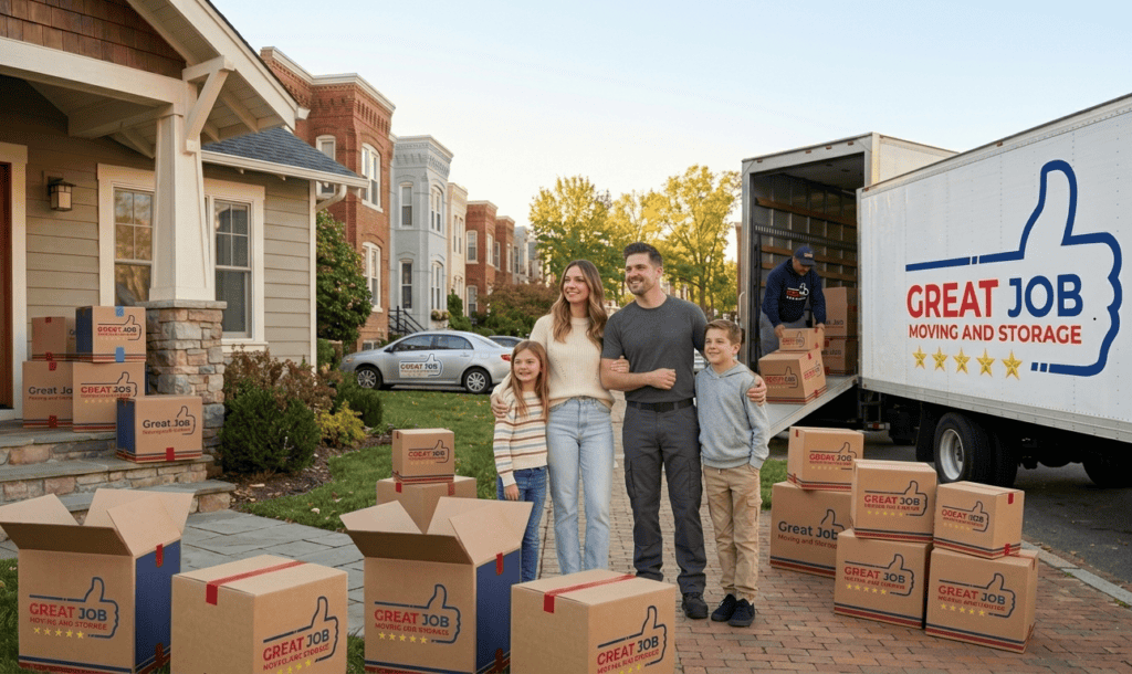 Ready to secure your moving date? Get a free, no-pressure quote for home relocation services with Great Job Moving and Storage. Our licensed, insured team brings 14+ years of experience and a 99% satisfaction rate to residential moving services in Virginia, Maryland, and DC—helping families like yours move with confidence and care.